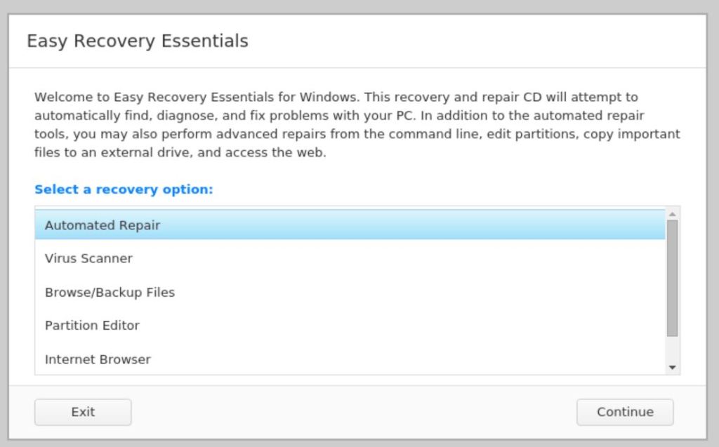 بعد عملية بحث في الانترنت لايجاد حل لاستعادة نظام الويندوز وجدت برنامج Easy Recovery Essentials الذي من خصائصه إصلاح مشكلة إقلاع الحاسوب و إستعادة البيانات و ملف Gurb الذي قمت بحذفه خطأ مني عندما حذفت برنامج EasyBCD و قد شرحت هذا في التدوينة الاولى