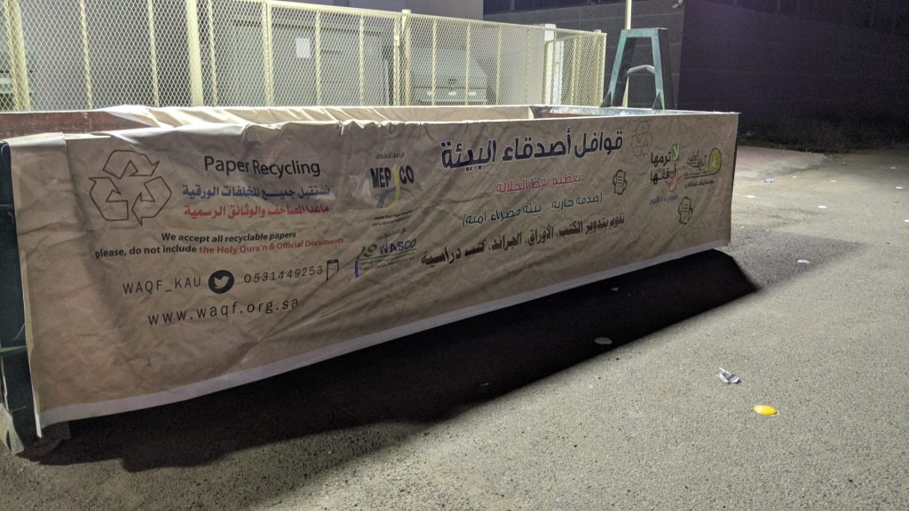 لكن وجدت إعلان عن حاوية من موقع تويتر لتدوير الكتب الأورق الجرائد الكتب الدراسية وهي من قوافل أصدقاء البيئة